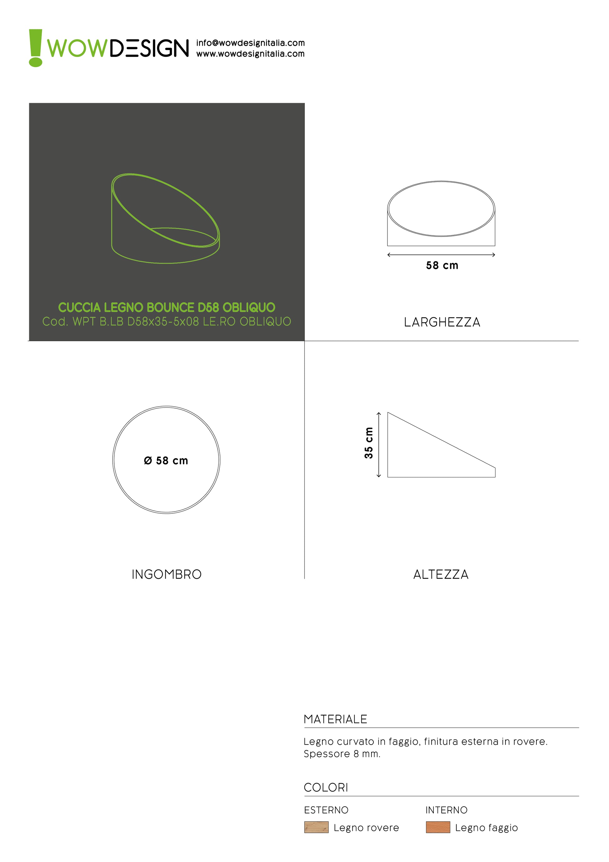 WOW! CUCCIA TELAIO LEGNO OBLIQ D58 ROVERE