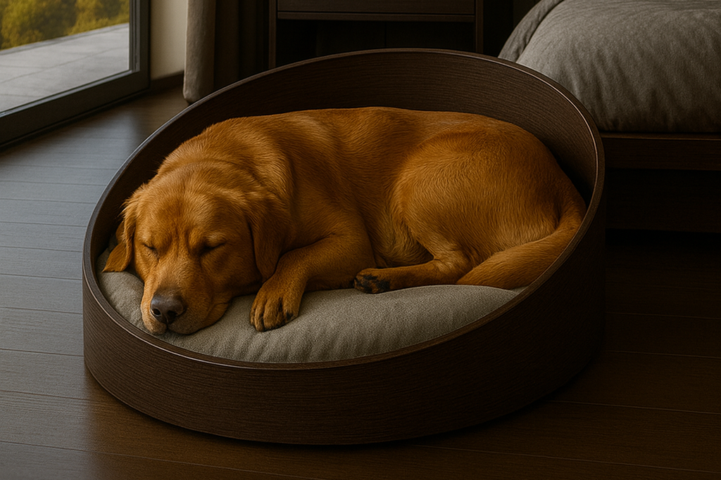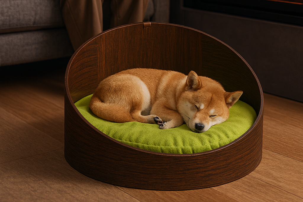 WOW! cuccia della collezione 'CURV-OBLIQ' diametro 58cm in legno finitura noce e rivestimento beige, è progettata sia per il comfort del nostro amico animale di taglia piccola o media (materasso con spessore generoso studiato per la morbidezza), mantenendo il giusto supporto, che normalmente viene utilizzato nei miglior arredamenti casa, sia per il design funzionale del legno curvato con 'spalliera' elegante che protegge il materasso e dona un estetica particolare all' ambiente che lo circonda. I tessuti da interni sono sfoderabili e lavabili, sono selezionati per la loro bellezza e qualità, con dettagli in cuoio che rendono la tua cuccia un elemento integrabile al tuo arredo casa, e che valorizza tutti i tipi di ambienti.