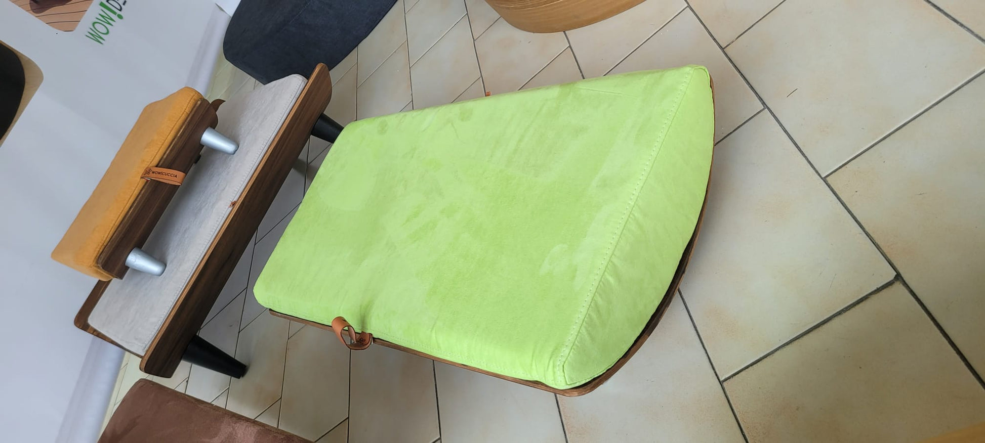WOW! cuccia della collezione 'CURV-QUART' diametro 79cm in legno finitura laminato noce, è progettata sia per il comfort del nostro amico animale (materasso con spessore generoso studiato per la morbidezza, mantenendo il giusto supporto che normalmente viene utilizzato nei miglior arredamenti casa), sia per il design funzionale del legno curvato in formato 'CHAISE LOUNGE' che dona un estetica particolare all' ambiente che lo circonda. I tessuti da interni sono sfoderabili e lavabili selezionati per la loro bellezza e qualità, con dettagli in cuoio che rendono la tua cuccia un elemento integrabile al tuo arredo casa, e che valorizza tutti i tipi di ambienti.