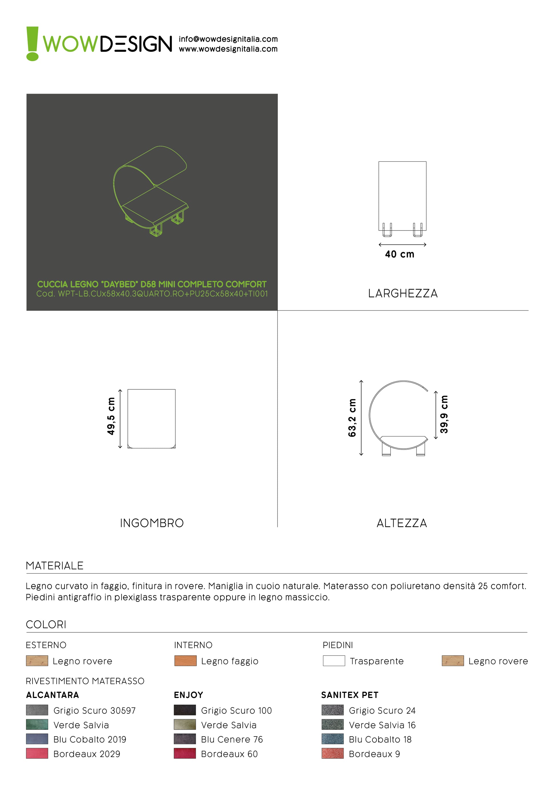 WOW!CUCCIA LEGNO 'DAYBED' D58 MINI COMPLETO COMFORT ROVERE