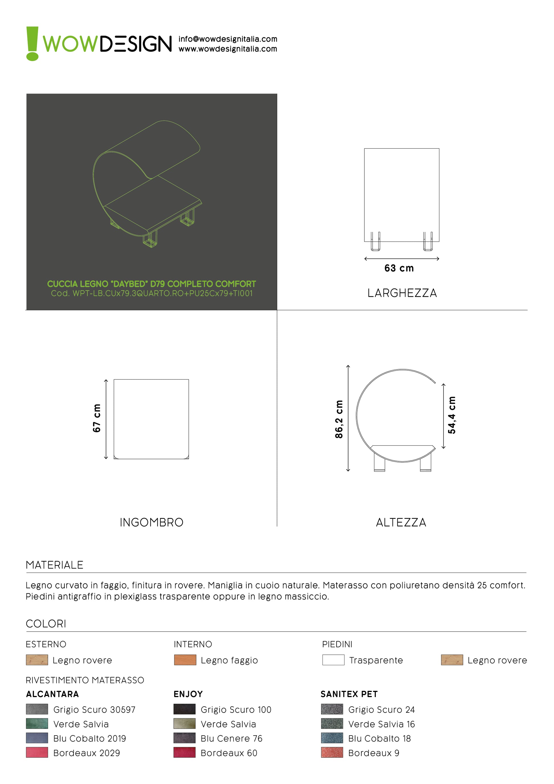 WOW!CUCCIA LEGNO 'DAYBED' D79 COMPLETO COMFORT ROVERE