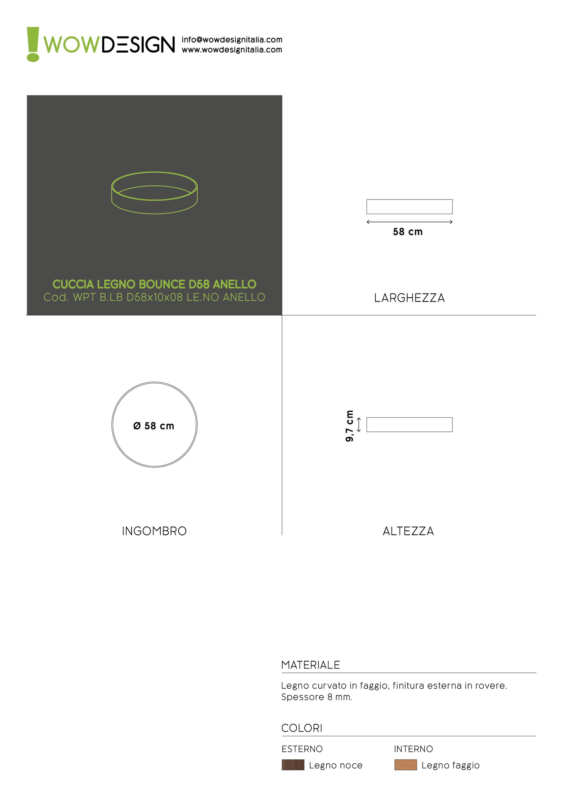 La cuccia legno Dimora ad anello, con diametro 58cm ed altezza 10 cm unisce l'intramontabile lavorazione artigianale del legno a un elegante design circolare, creando un raffinato luogo di riposo per il vostro animale domestico. I suoi materiali naturali e la forma elegante la rendono un'aggiunta di gusto a qualsiasi interno, offrendo comfort e stile in perfetta armonia. Un elemento d'arredo che esalta il comfort del vostro animale domestico.